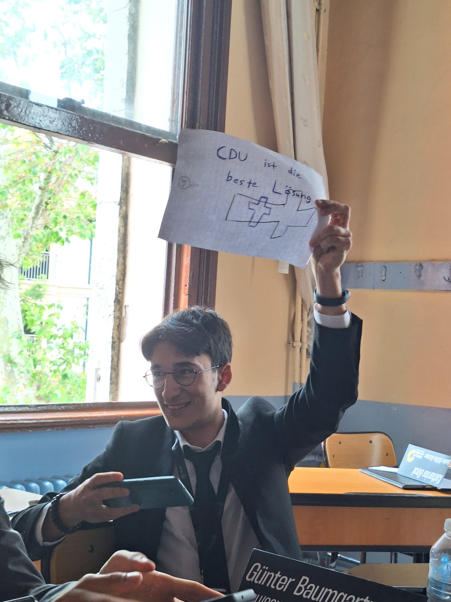 Unser Schüler aus der 10. Klasse, Alp Haktan Gün, hat unsere Schule beim InternationalenModel-United-Nations-Kongress des Istanbul Erkek Lisesi eindrucksvoll vertreten – alsCDU-Abgeordneter Günter Baumgartner im Deutschen Bundestag.