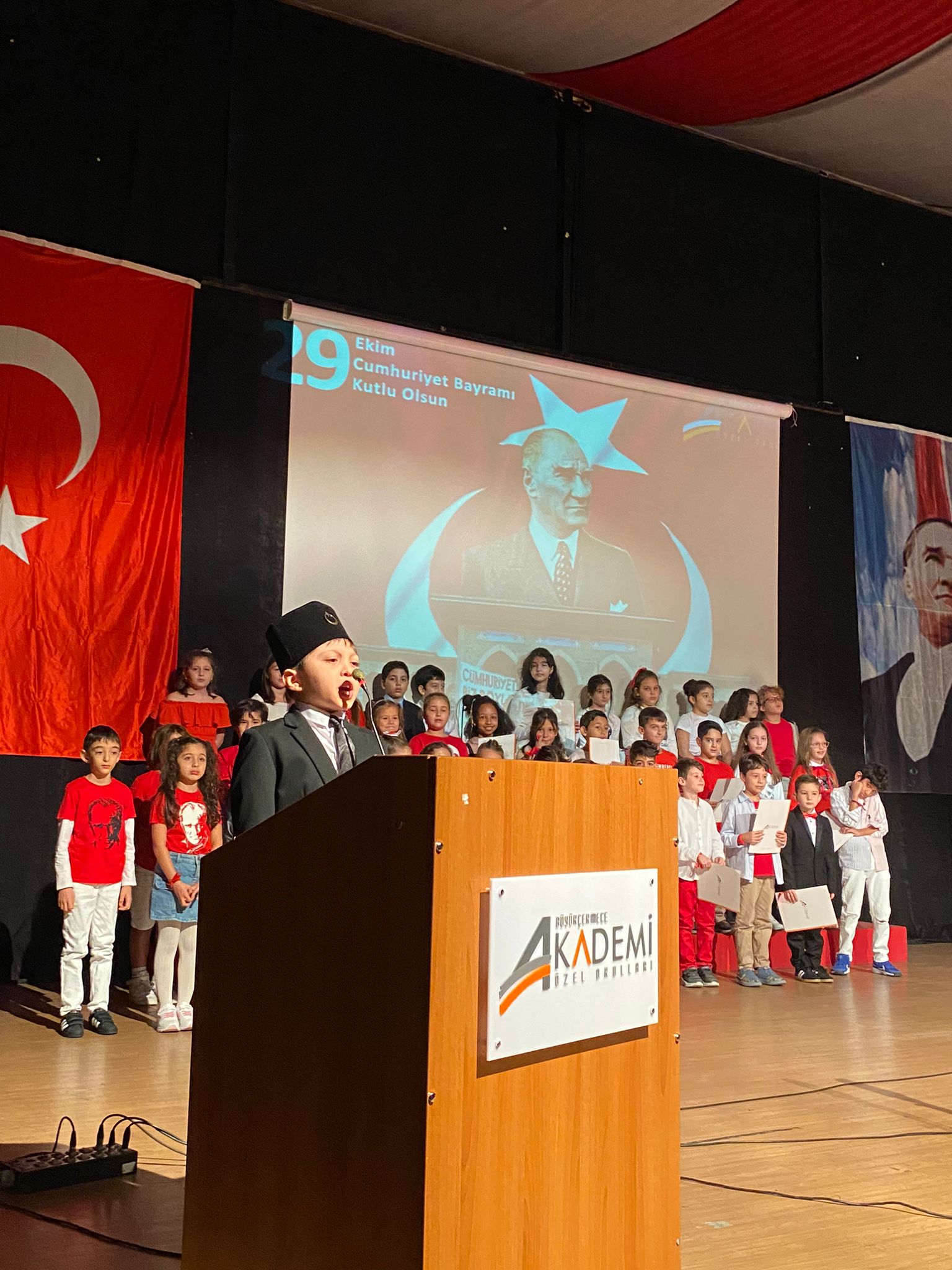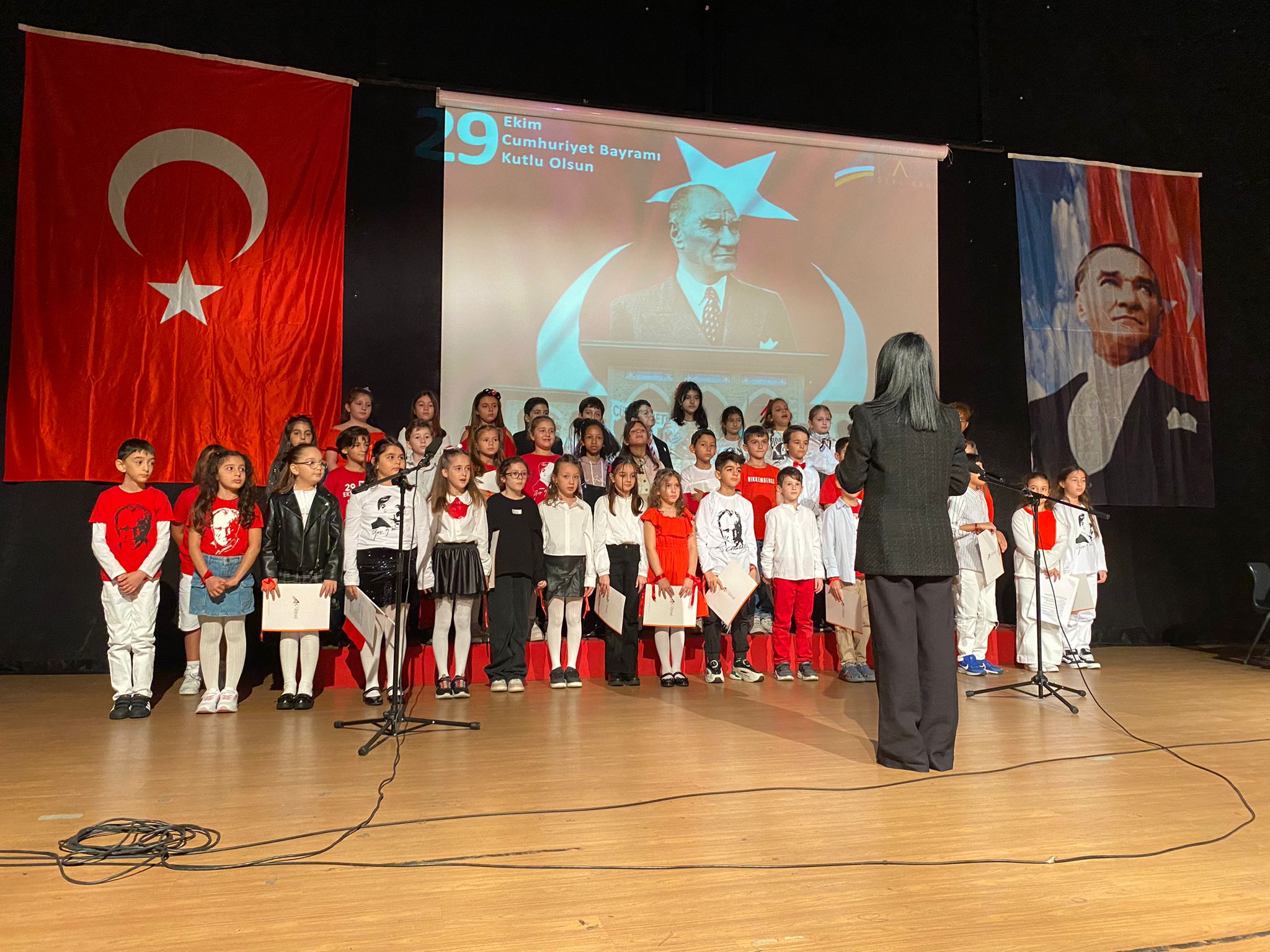 Okulumuzda, 29 Ekim Cumhuriyet Bayramını kutlama programlarımızın ilki, 3.sınıflarımızın sahne etkinleri ile başladı. Dramalar, söz koroları, şiirler, müzikler ve marşlarla dolu bu etkinlik, salonda bulunan veliler ve diğer öğrencilerimiz tarafından çok beğenildi. 3.sınıf öğrencilerimizi ve bu etkinlikte görev alan öğretmenlerimizi kutluyoruz.