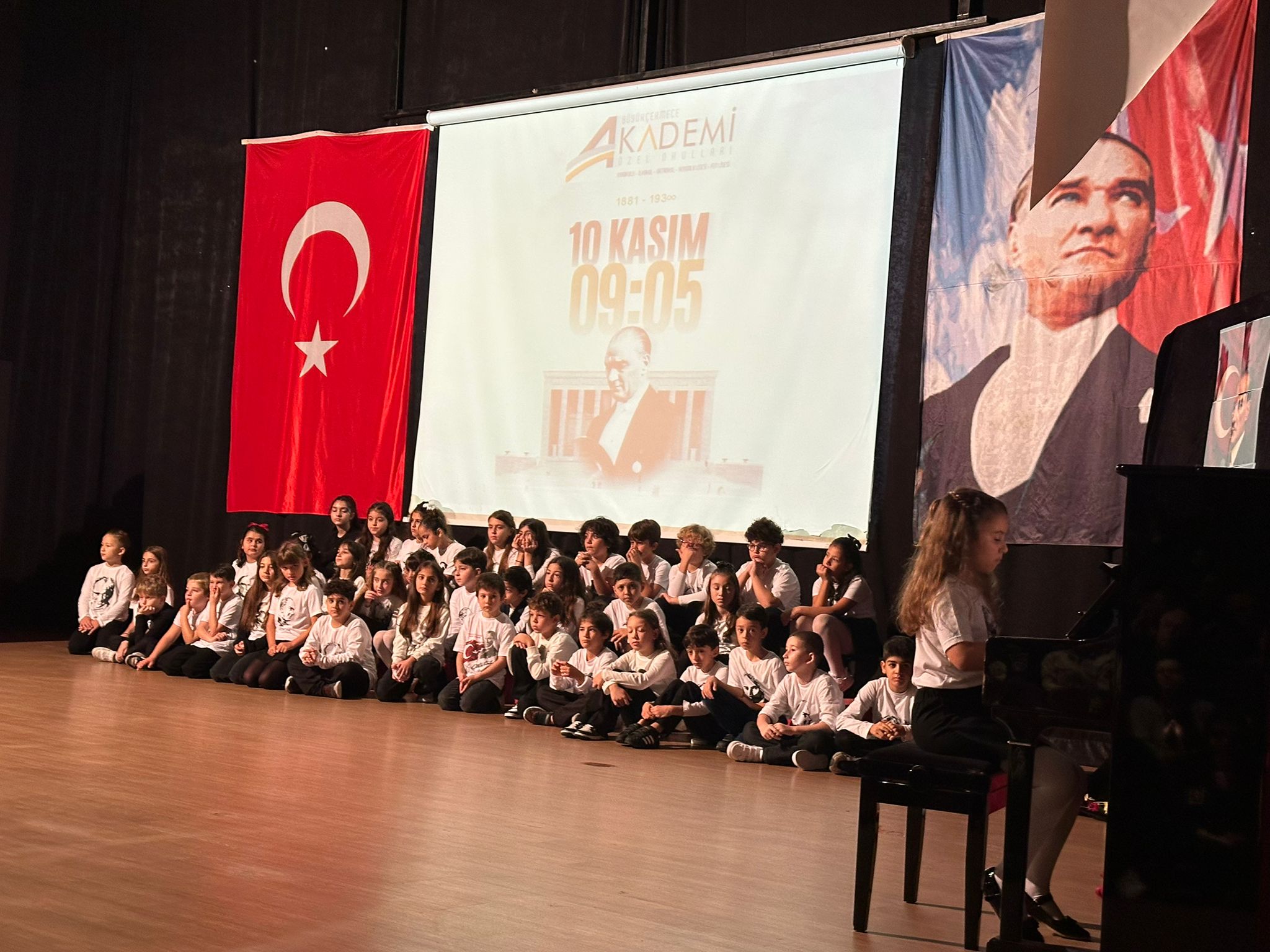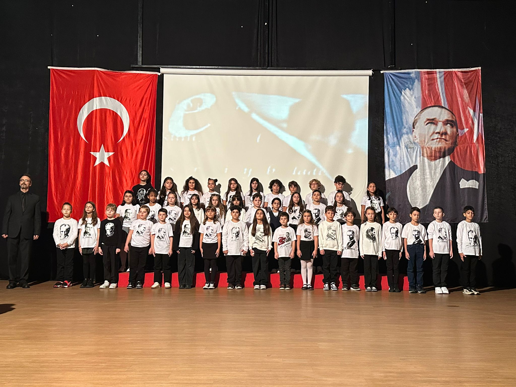 The first of our 10th November Atatürk Commemoration Ceremonies was held in our conference hall, presented by our 4th-grade students. Following the speeches, poems, and stage performances, the ceremony concluded with songs and a touching finale titled “We Are the Lights of the Republic.”