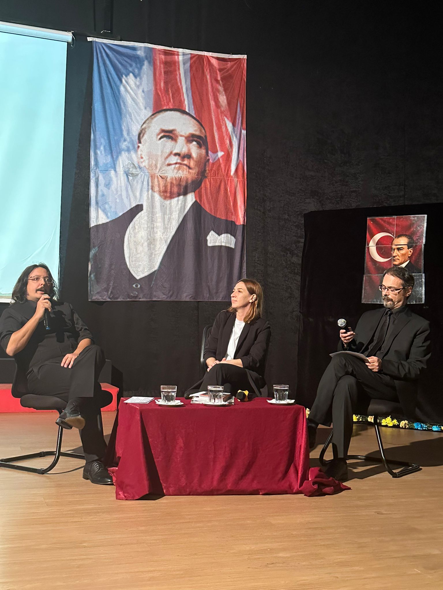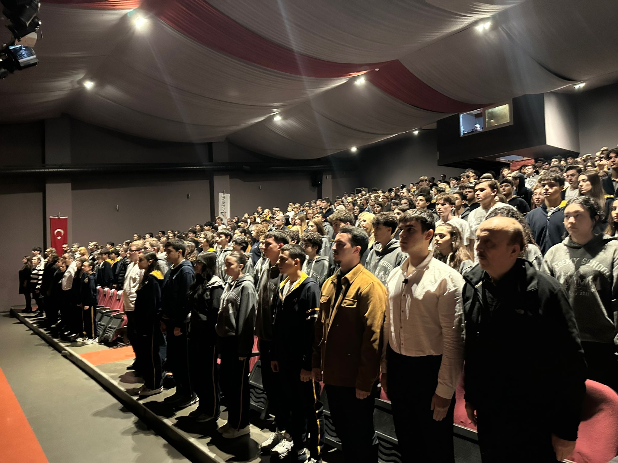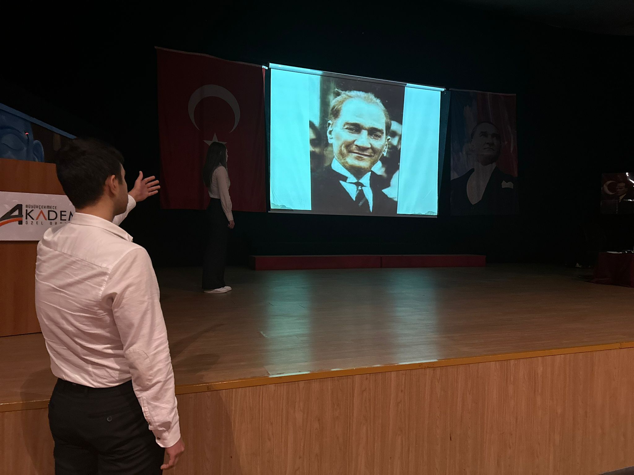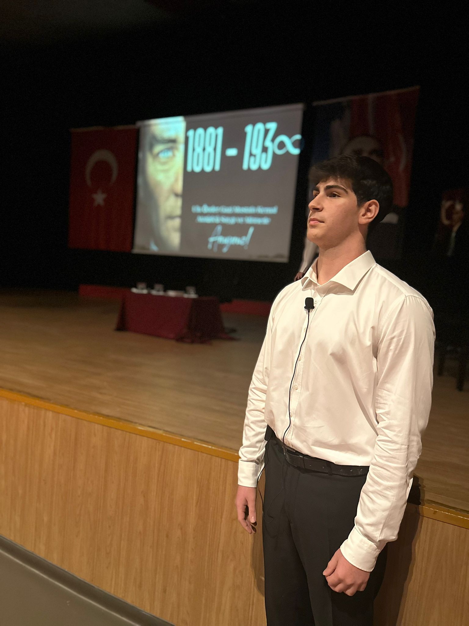 10 Kasım Atatürk’ü Anma törenlerimizin ikincisi yine konferans salonumuzda gerçekleşti. Konuşmalar ve bir lirik sahne gösterisinin ardından öğretmenlerimiz tarafından “ Atatürk ve Sanat” konulu bir söyleşi yapıldı.